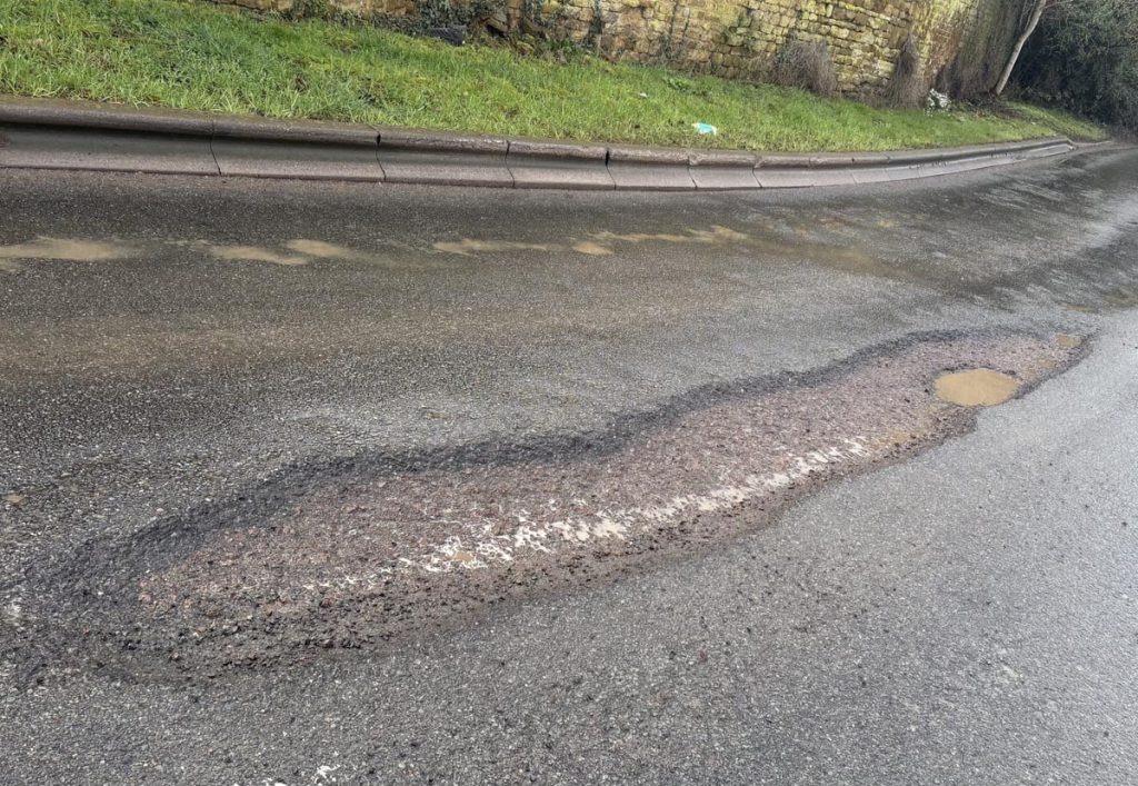 Barry found it on the bend of the A361 by the Hare & Hounds and sent us the nomination. He said: “It has a pothole within a pothole! It follows the bend and is around 4 inches deep. That’s special, that is.”