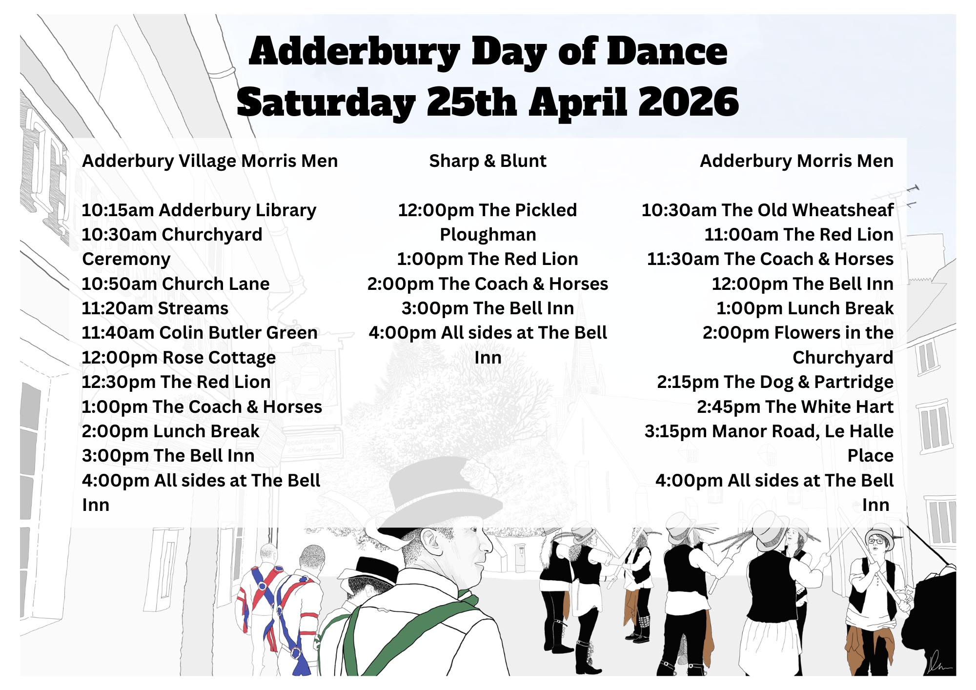 Adderbury’s three Morris Dancing sides, enjoy a traditional day of dancing at a number of locations around the village.
