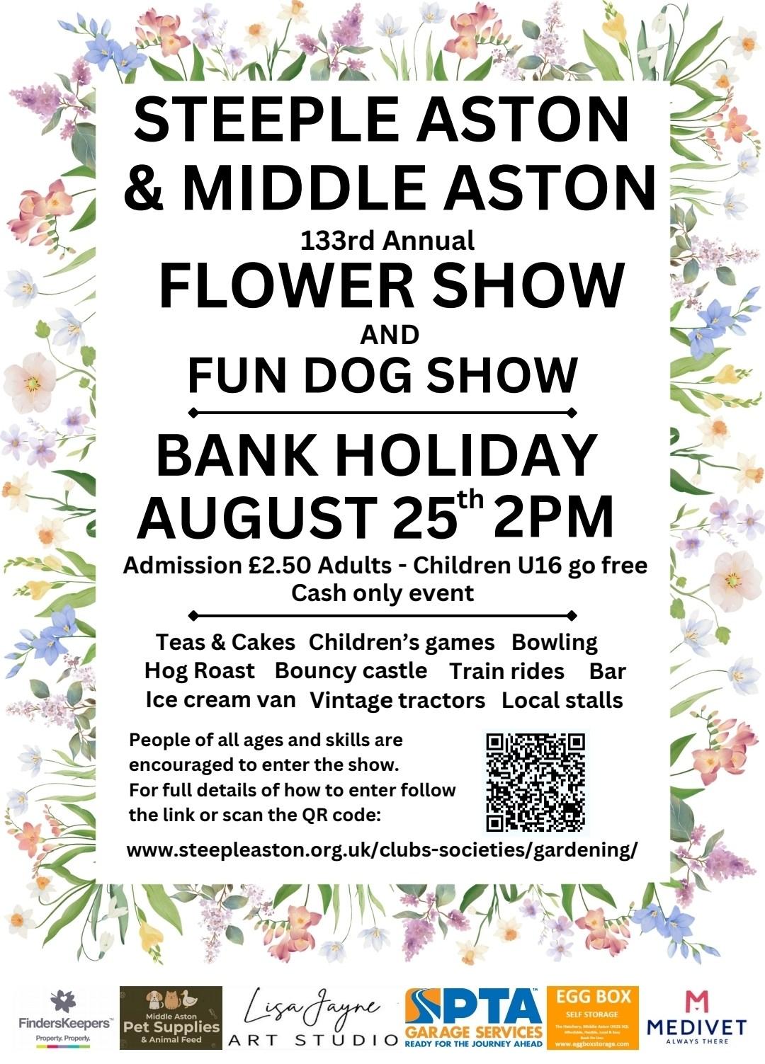 On Bank Holiday Monday, 26th August Steeple Aston and Middle Aston Horticultural Society will hold its 133rd Annual Show along with a Fun Dog Show.