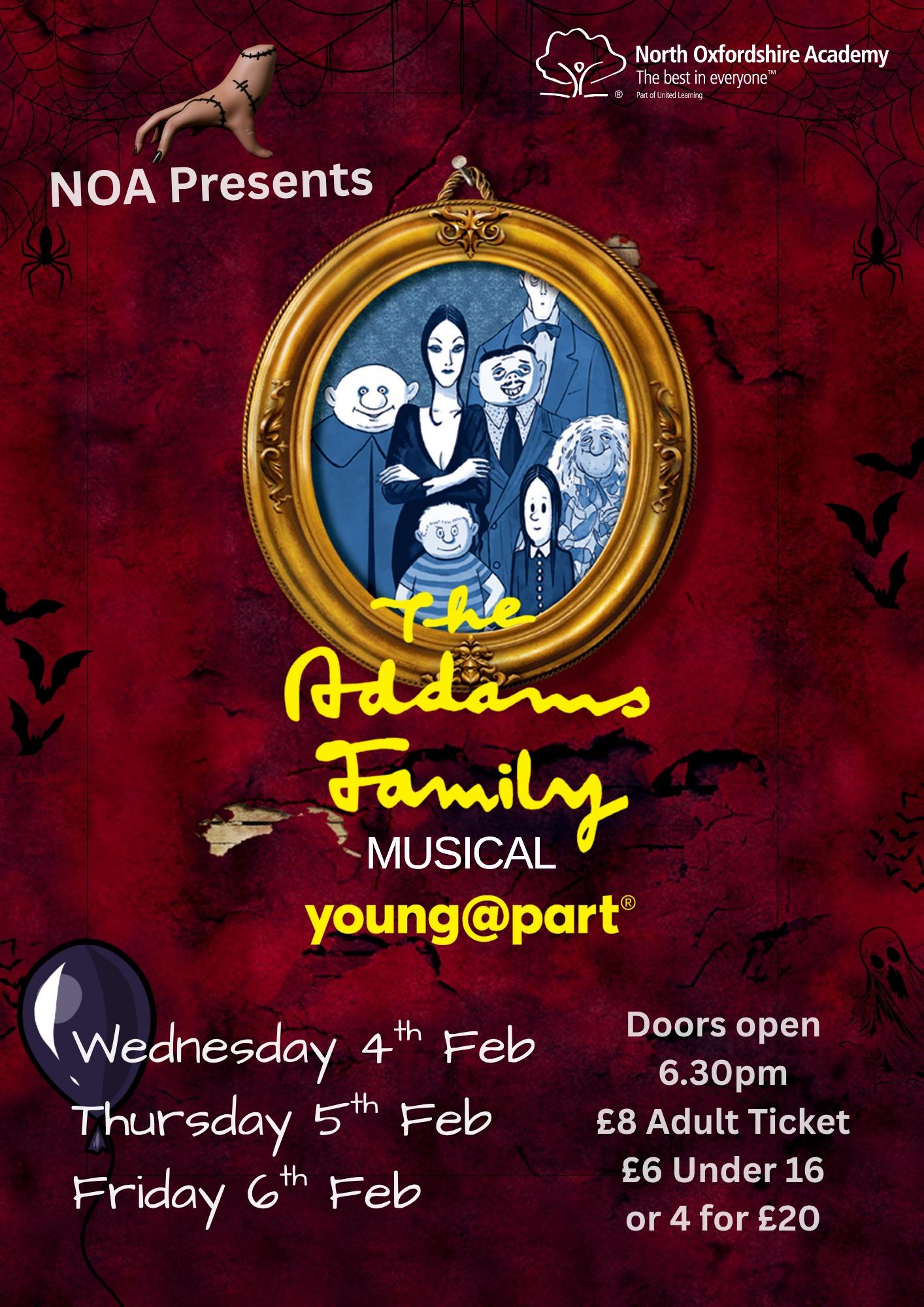 Step into the delightfully dark world of The Addams Family Musical, brought to life by the talented students of the North Oxfordshire Academy. With three thrilling show nights to choose from, you won’t want to miss this hilarious, heart-warming, and hauntingly unforgettable performance.
