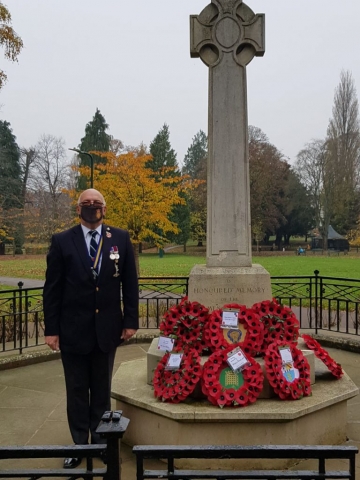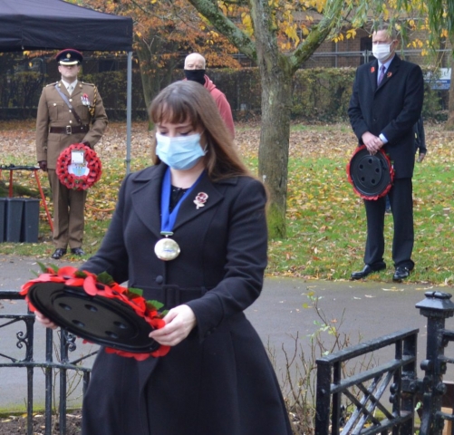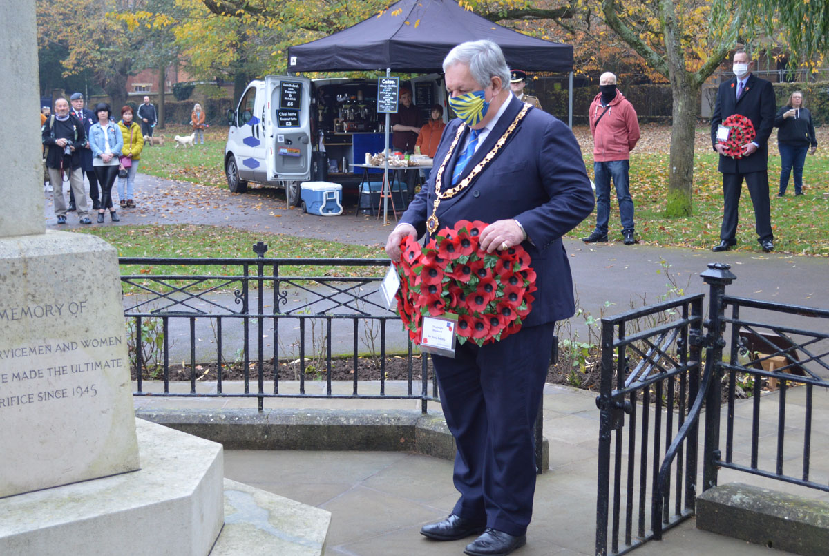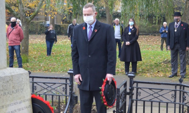 Remembrance Sunday has been marked at a small event in People’s Park today. Wreaths were laid at the War Memorial on Sunday morning.