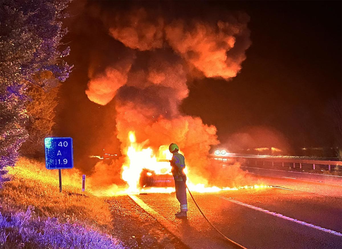 They arrived to find the vehicle fully ablaze and a running fuel fire spreading on the carriageway.